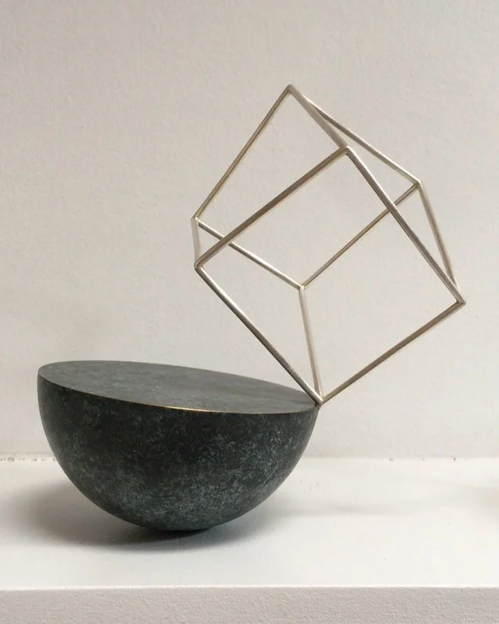 Having made functional silver tableware for years, my work is becoming increasingly abstract and less concerned with the traditional perceptions of function. My new work investigates the meeting of contrasting elements within a form. Simple, heavy and calm bowl forms are ‘interrupted’ by visually complex, open and delicate structures. The essence is in the dialogue, tension or collision that happens in that meeting point.