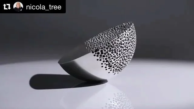 All my work begins with the simple geometry of bowl forms and flat sheet. I often include metal wire, used like line drawing in space. Applying traditional techniques such as hand piercing, drilling and soldering, I enjoy working in a variety of metals, combining them in an exploration of colour and texture.