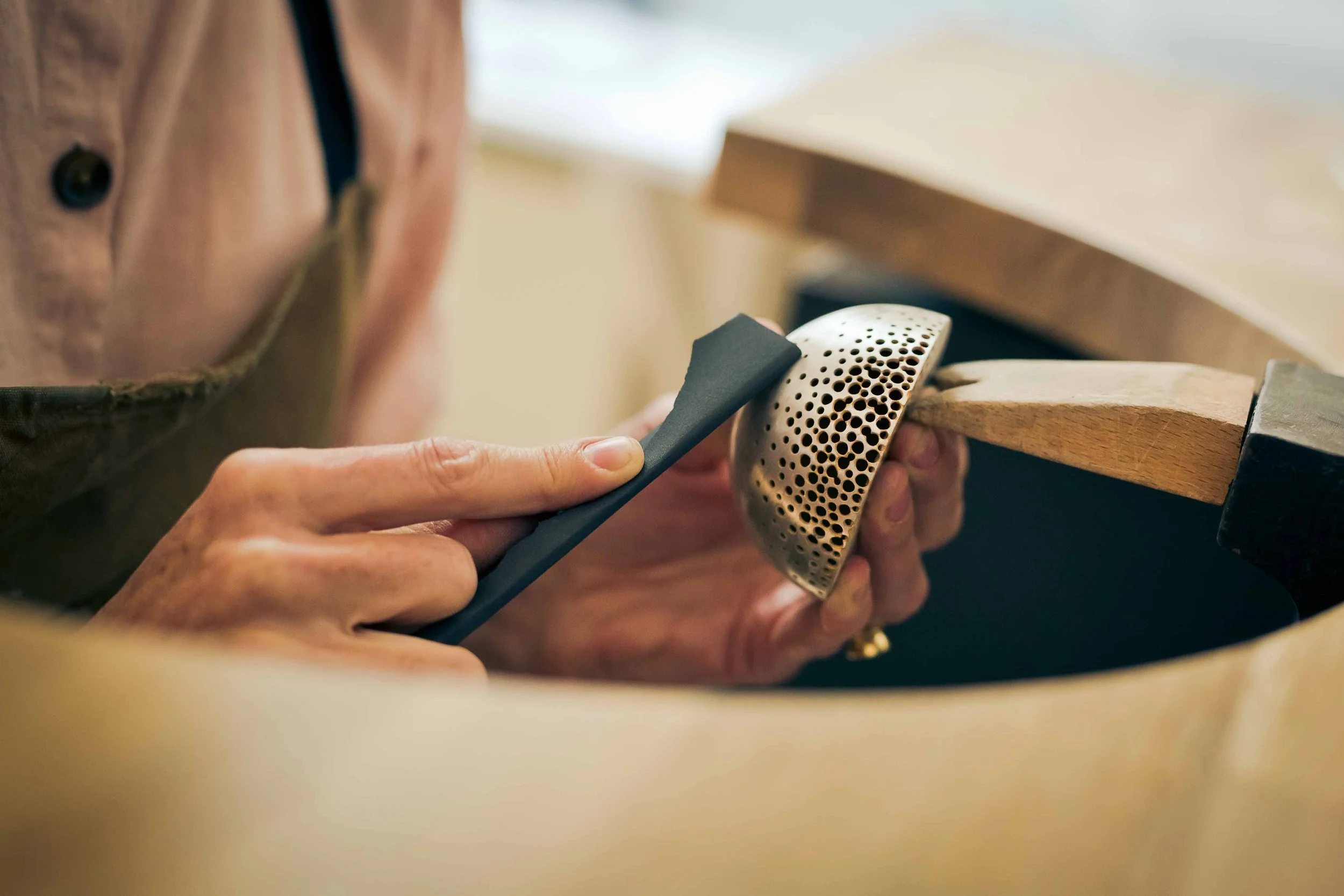 Ane Christensen is an artist & maker working in metal, with a practice spanning over 25 years. Ane grew up in Scandinavia and its cultural anticipation and celebration of light continues to have a profound influence on her work and practice. The theme of presence and absence of light runs through every piece she makes